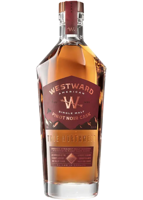 Westward American Single Malt Pinot Noir Cask is fruity and robust, with plum, apricot leather, and chocolate ganache notes. Flavors include apple, plantain, and nutmeg, with a rich, dried fruit and sweet malt finish.Brand Description
