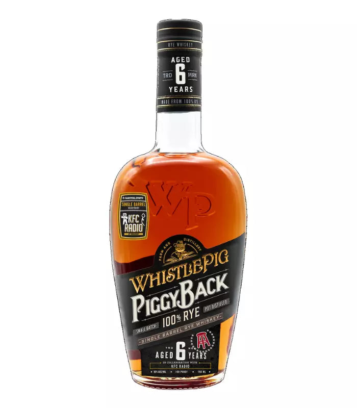 Born from the partnership with Barstool Sports' KFC Radio, embodies a unique blend of storytelling and spirit-making. Aged for six years, this single barrel rye showcases WhistlePig's mastery in rye whiskey production, delivering a rich and robust flavor profile that is as unique as the barrel it matured in. Perfect for enthusiasts of both whiskey and radio, the WhistlePig Piggyback KFC Radio Rye is more than just a drink – it's a tribute to the art of conversation and the joy of shared experiences.